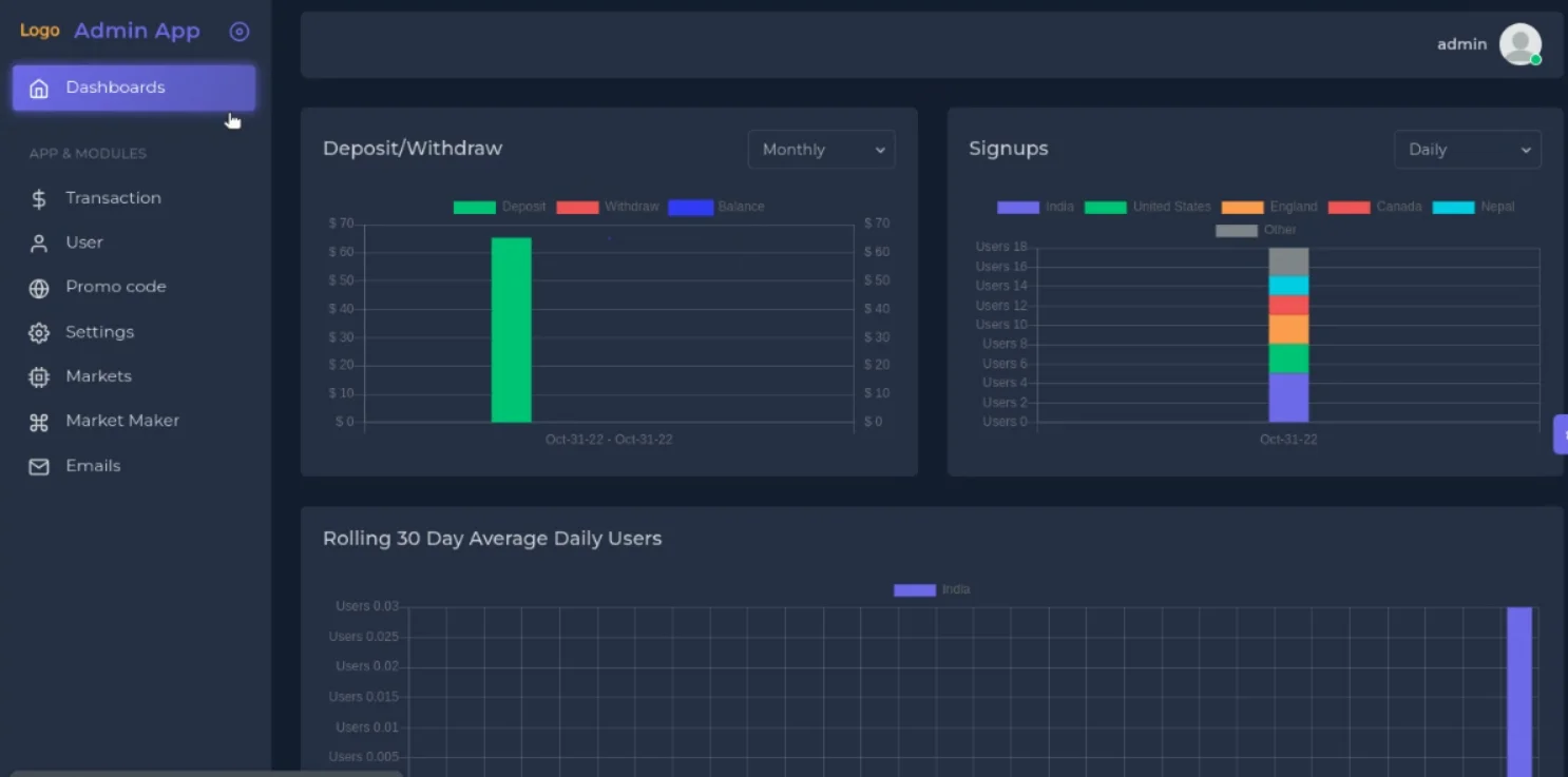 Developed comprehensive market and order management functionalities, including market status filters, order books, market depth charts, and candle charts.